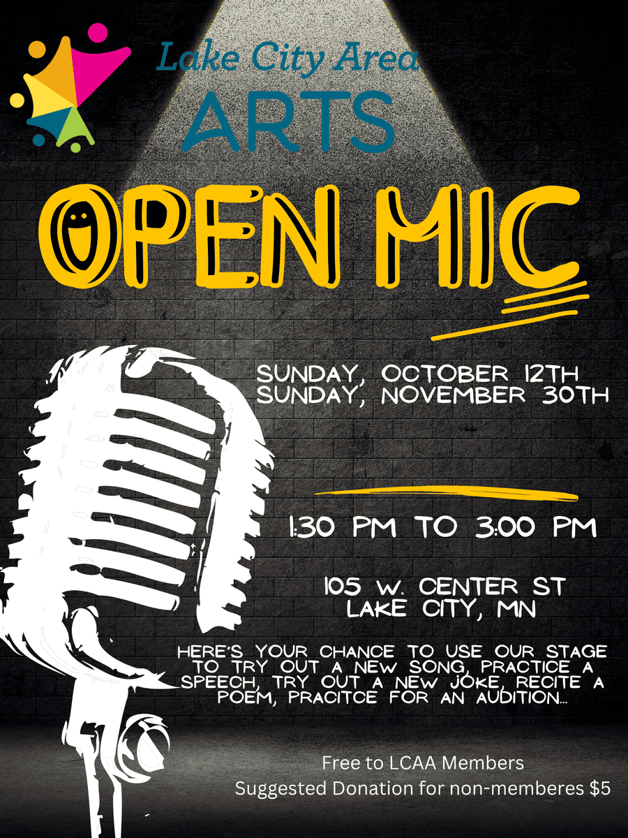 Here’s your chance to use our stage to try out a new song, practice a speech, try out a new joke, recite a poem, or practice for an audition!