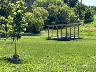 Beautiful dog park with separate areas for both large and small dogs. We provide water for your canine, benches, picnic tables and shade shelter. A place to connect, exercise and enjoy the outdoors.