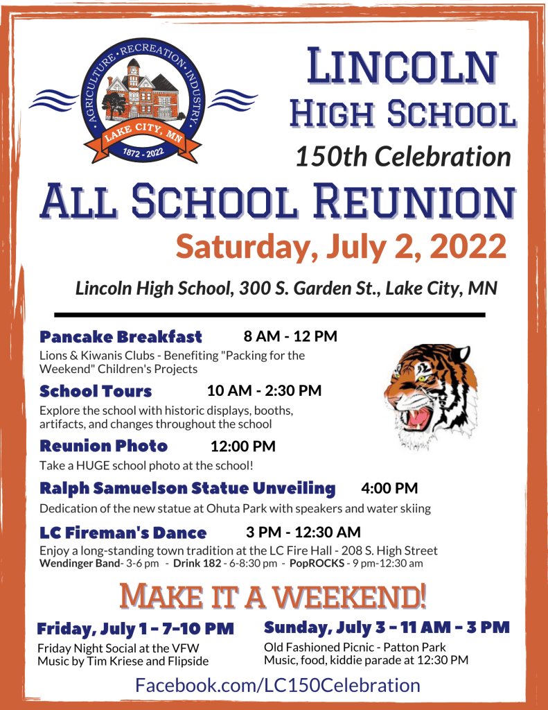 Did you go to school in Lake City? Join the fun on July 2nd! Pancake breakfast, school tours, a historic sculpture dedication, and much more fun! We hope to see