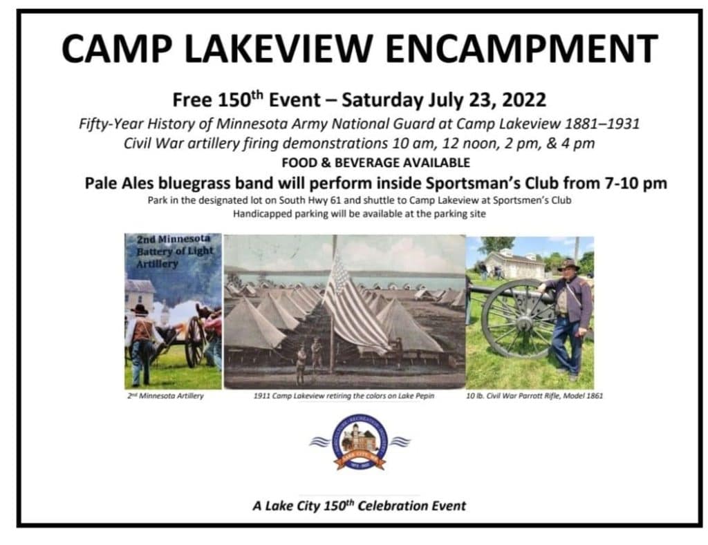 Join us in Lake City for this free 150th Celebration event. See how life was like during the Minnesota Army National Guard encampment at Lakeview from 1881-1931. Experience Civil War