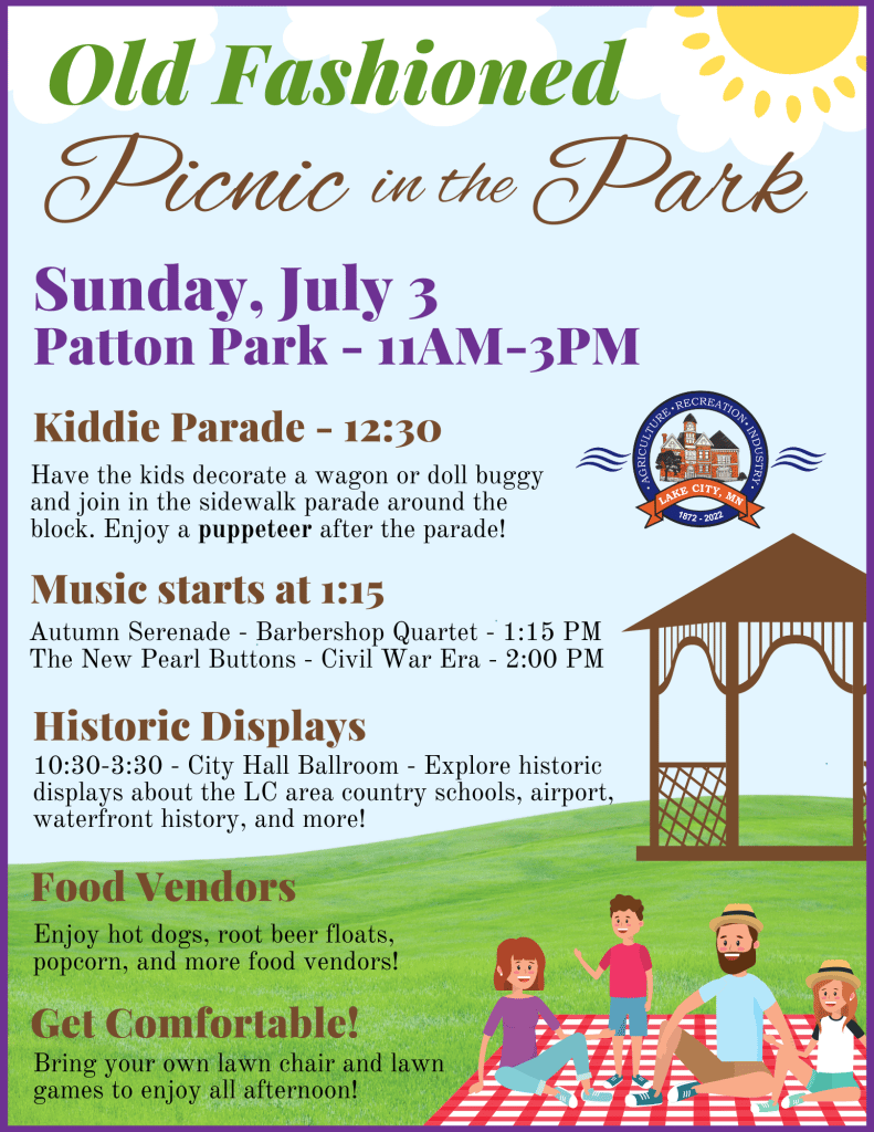 This will be a great event for kids of all ages! See Lake City’s Patton Park and celebrate the holiday weekend in a fun ‘Old-Fashioned’ way! Kiddie Parade, Puppets, Live