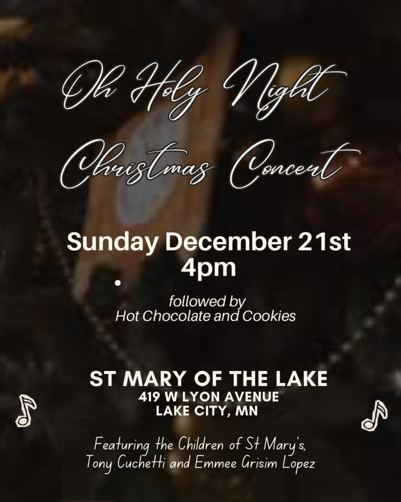 Join us for music by the Children of St Mary of the Lake. Along with Tony Cuchetti and Emmee Grisim Lopez. Cookies and Hot Chocolate will be served after!