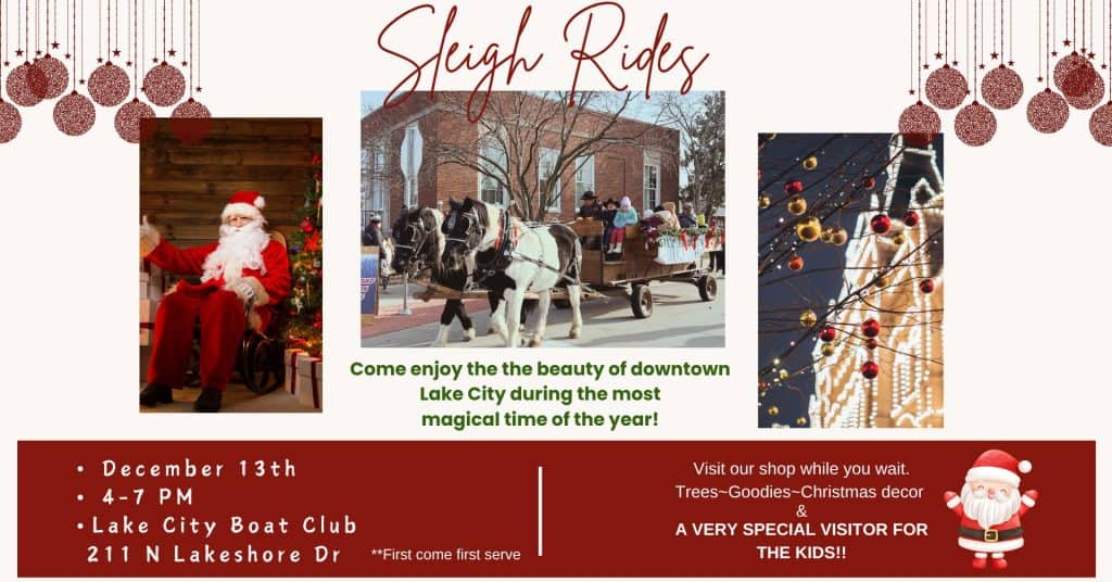 Come enjoy the beauty of Lake City during the Holidays with a sleigh ride through town. Sleigh rides will be on a first come basis. Enjoy hot cocoa, cookies, holiday […]